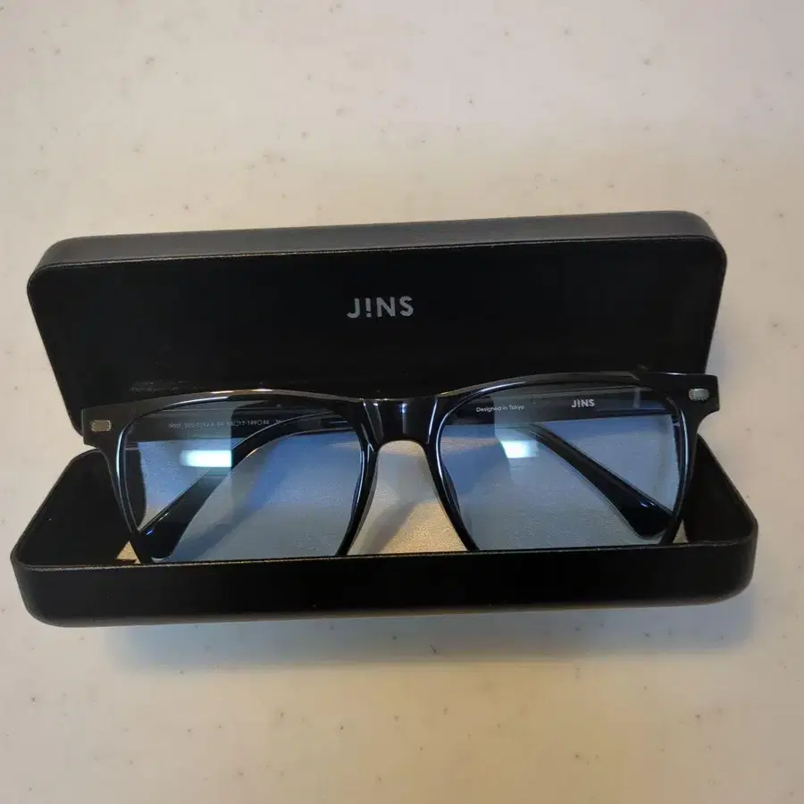 JINS 블랙 웰링턴 스타일 안경 파란 렌즈