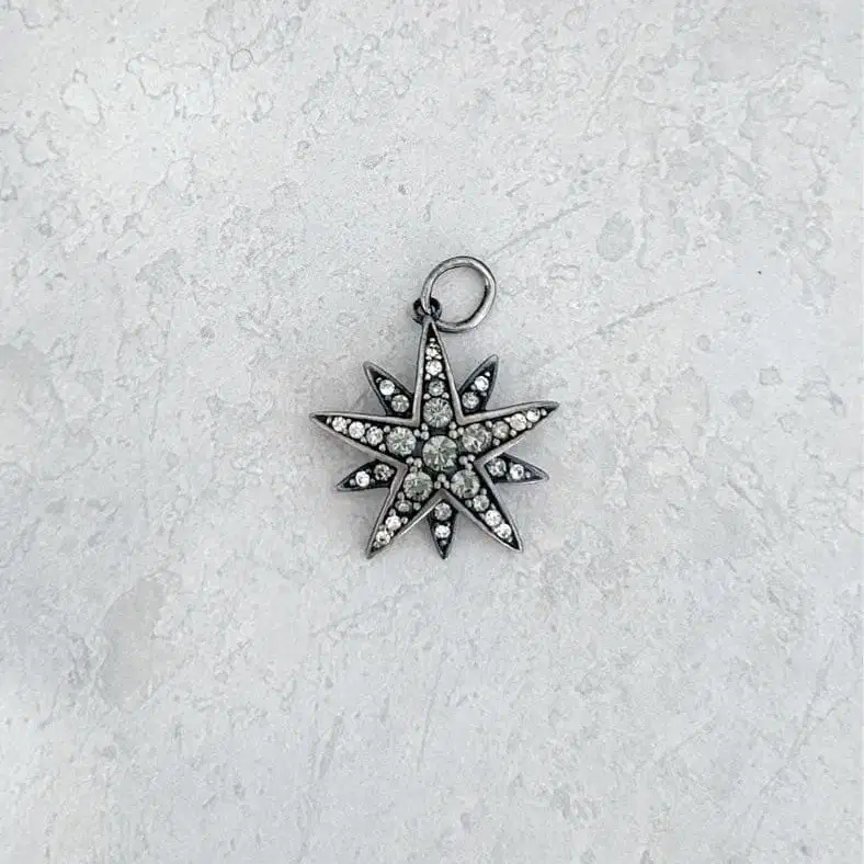 장기 보관했던 아가트 별 모양 참입니다. 실버의 오래된 듯한 가공으로 존재감이 있습니다. 약간 와이드한 체인과 조합하면 좋을 것 같습니다.