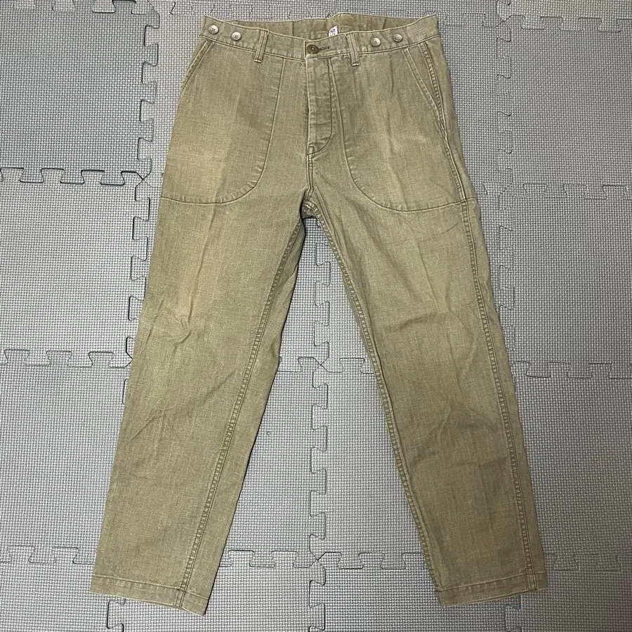 어느 정도 착용하여 색이 보기 좋게 퇴색되었으며 HBT의 매력이 잘 드러난 팬츠라고 생각합니다.