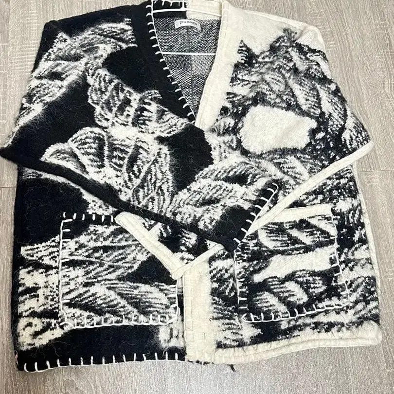 로프 무늬 디자인이 특징인 오픈 프론트 가디건.