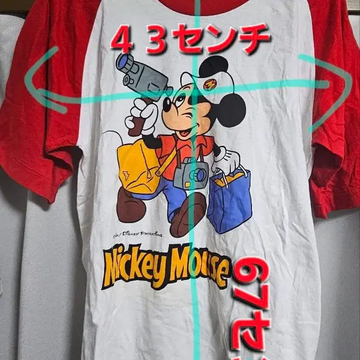 디즈니랜드 미키마우스 티셔츠 레트로 빨간색 메이드 인 재팬