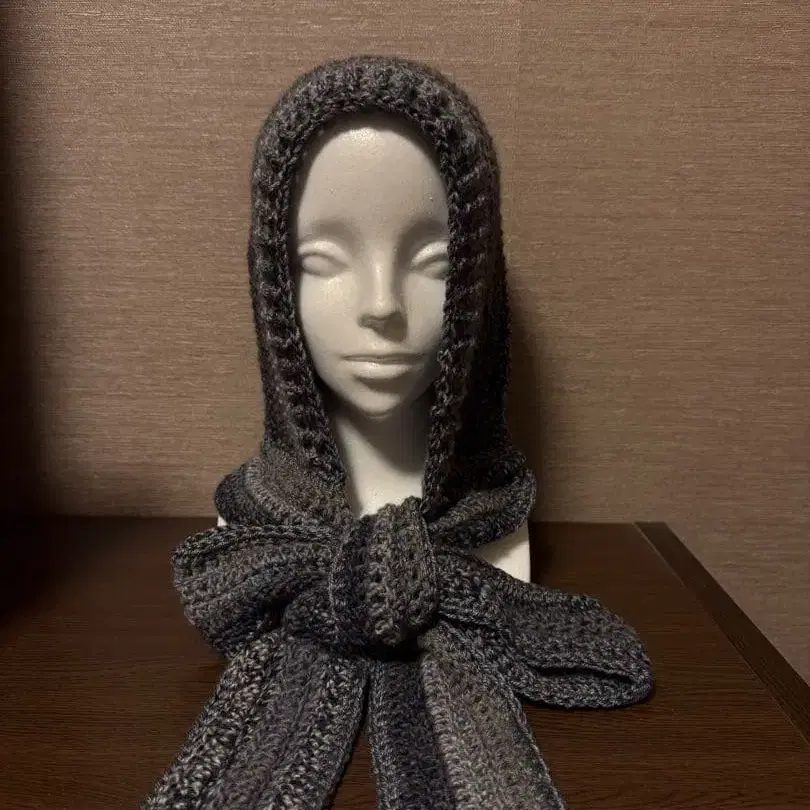 오버 사이즈 후드 부착 머플러 리본 묶음 소피 후드 손뜨개질