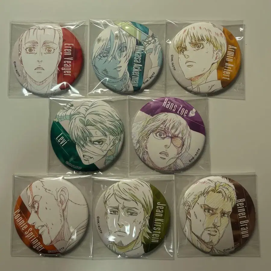 진격의 거인 MAPPA 원화 캔뱃지 컴플리트 전 8종 세트 엘렌, 미카사, 알루민, 한지, 리바이, 라이너, 장, 코니 각 1점 에어캡으로 포장하여 발송합니다. 그 외 진격의 거인 관련 상품도 판매 중입니다. 묶음 구매 시 할인해 드리니 검토해 주세요. 내용물 확인을 위해 개봉 후, 이미지와 같이 opp에 넣어 어두운 곳에서 보관했습니다. 미사용이지만, 한 번 사람의 손을 거친 제품입니다. 미세한 스크래치 등이 있을 수 있으니, 상태에 대해서는 이미지로 확인하시고 이해하시는 분만 구매 부탁드립니다. 질문 등이 있으시면 편하게 댓글로 문의해 주세요!