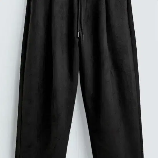 자동 번역되었어요. 원문보기블랙 페이크 스웨이드 원단으로 제작된 와이드 레그 팬츠입니다. 조절 가능한 드로 코드(끈)가 있는 허리밴딩. 장식 프론트 플리츠. 프론트 포켓, 백에는 패치 포켓.