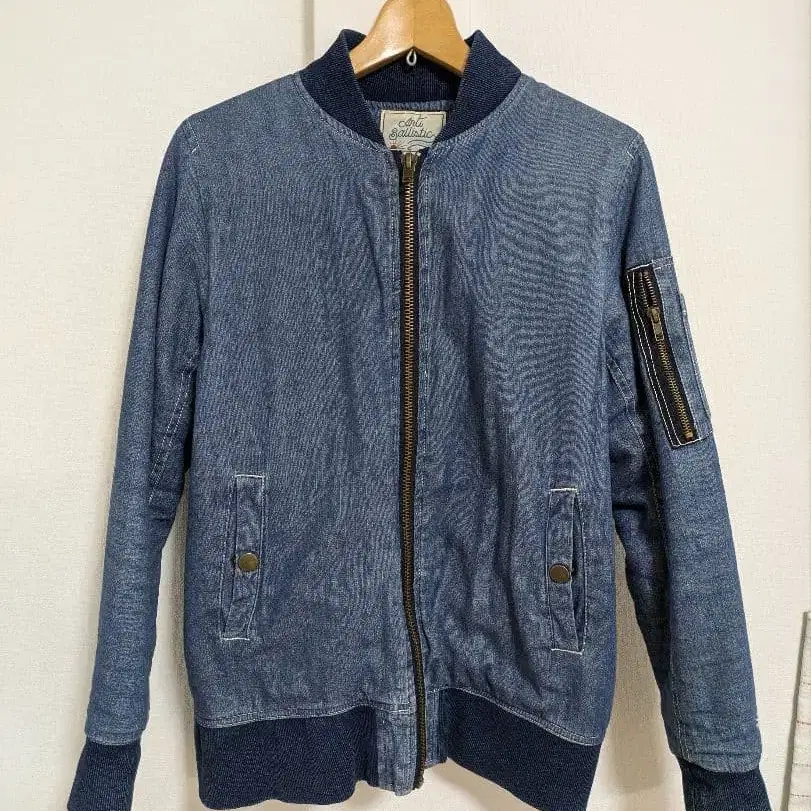 자동 번역되었어요. 원문보기데님 블루 봄버 자켓, 자수 디자인과 플리스 라이닝이 특징.