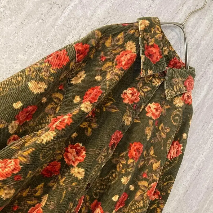 장미 꽃무늬가 아주 귀여운 코듀로이 블라우스입니다.