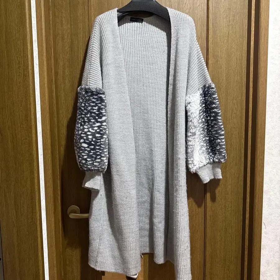 롱 그레이 니트 가디건 복슬복슬 퍼 포함