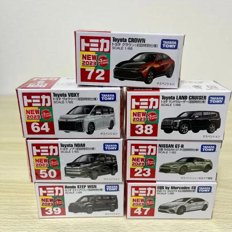 2023년 신상 토미카, 다양한 차종의 미니카 세트. - 모델명: 토미카 - 신상: 2023년 - 차종: 도요타 크라운 - 차종: 도요타 복시 - 차종: 도요타 노아 - 차종: 닛산 GT-R - 차종: 도요타 랜드크루저 - 차종: 혼다 스텝 왜건 - 차종: 에그 바이 메르세데스 벤츠 방문해 주셔서 감사합니다.
