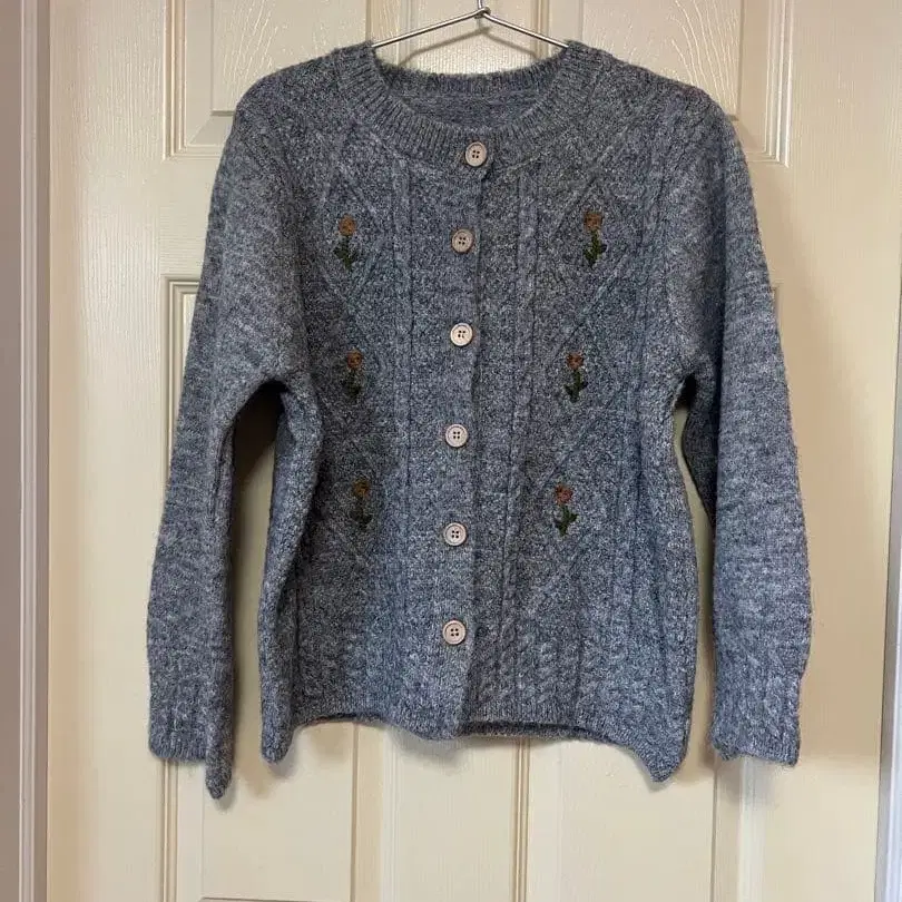 레트로 꽃 자수 니트 가디건 탁한 파랑 M