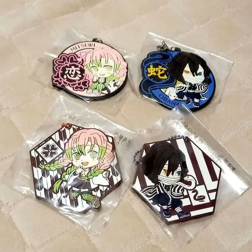 귀멸의 칼날 오바미츠 이구로 오바나이 칸로지 미츠리 1번 복권 큥캐릭터 러버 스트랩 〇미개봉 미사용 〇4개 세트