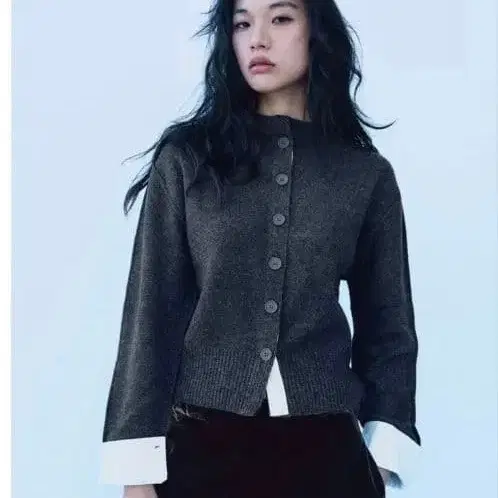 ZARA 콤비 니트 가디건 긴팔 버튼 포함