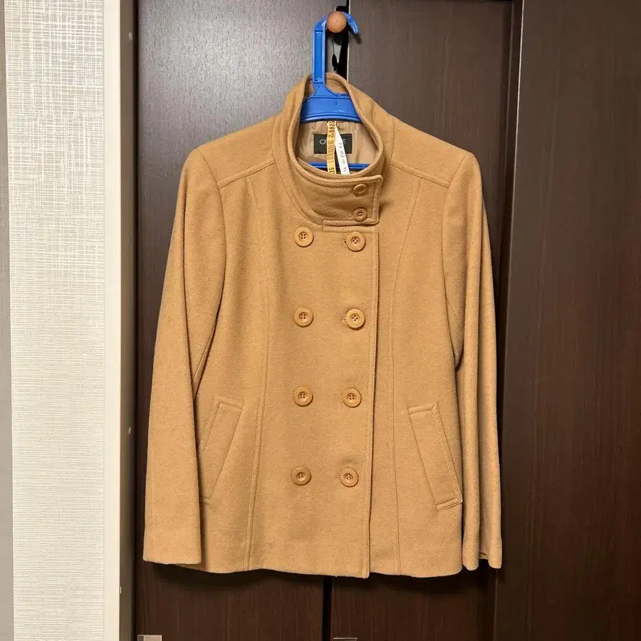 울 100% 라이트 브라운 더블 브레스트 피코트 M 사이즈