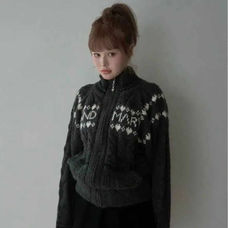 그램립스 멀티 컬러 자카드 지퍼 숏 기장 니트