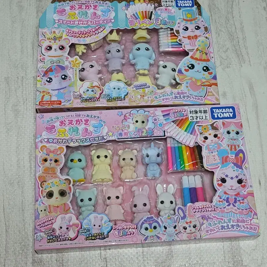[모후렌즈]에 디럭스 세트가 등장! 인형은 8체 (토끼(드레스), 고양이(드레스), 곰(드레스), 유니콘, 토끼, 고양이, 펭귄, 곰)가 들어 있습니다! 스탬프 펜은 누르기만 하면 간단하게 모티브를 페인트할 수 있습니다! 모티브는 [리본 (핑크)] [꽃 (블루)] [별 (퍼플)] 등 귀여운 모티브가 총집합! 그림 그리기 놀이 x 스탬프 놀이로 즐거움과 귀여움이 배가 됩니다 ♪ 선물로도 추천합니다.