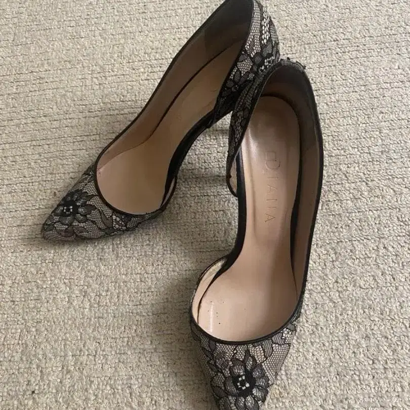 엘레강트한 레이스 디자인의 하이힐. - 색상: 블랙/베이지 - 디자인: 레이스 소재 - 힐 높이: 약 8cm - 사이즈: 불명 (이미지에서는 확인 불가) 방문해 주셔서 감사합니다.