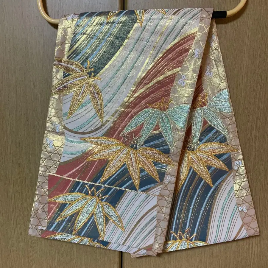 자동 번역되었어요. 원문보기리버서블로 사용 가능합니다. 파도 무늬와 부채 무늬의 아름다운 후쿠로 오비, 다채롭고 화려한 디자인.