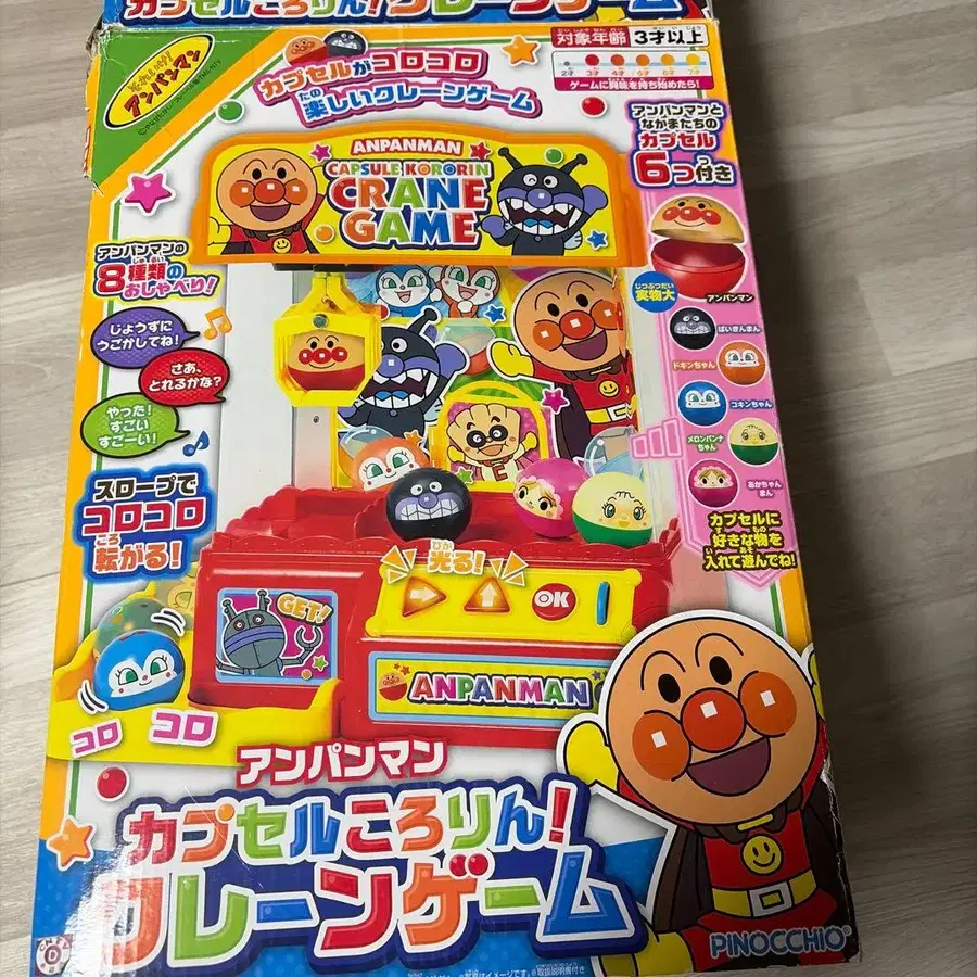 컬러풀한 공을 잡는 재미가 있는 뽑기 게임. - 브랜드: 호빵맨 - 상품명: 캡슐 굴러라! 뽑기 게임 - 기능: 뽑기 게임 - 대상 연령: 3세 이상 - 디자인: 컬러풀하고 즐거운 캐릭터 디자인 - 부속품: 공 6개 - 조작 방법: 레버 조작으로 크레인을 움직임 방문해 주셔서 감사합니다. 외부 박스는 상당한 사용감이 있지만, 완구 본체는 작동 확인 완료했습니다. 사용설명서는 없습니다. 양해 부탁드립니다. 살균 시트로 청소 완료했습니다. 사용감이 있다는 점을 인지하시는 분만 구매 부탁드립니다.