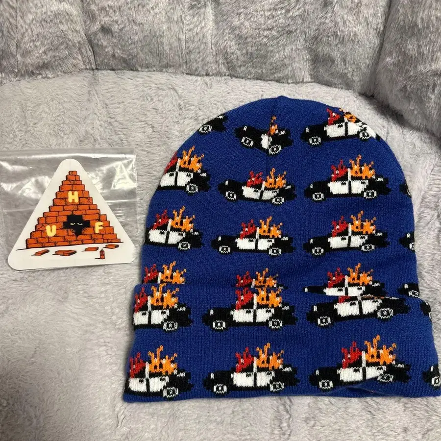 HUF 순찰차 패턴 니트 모자 파랑 HUF 스티커