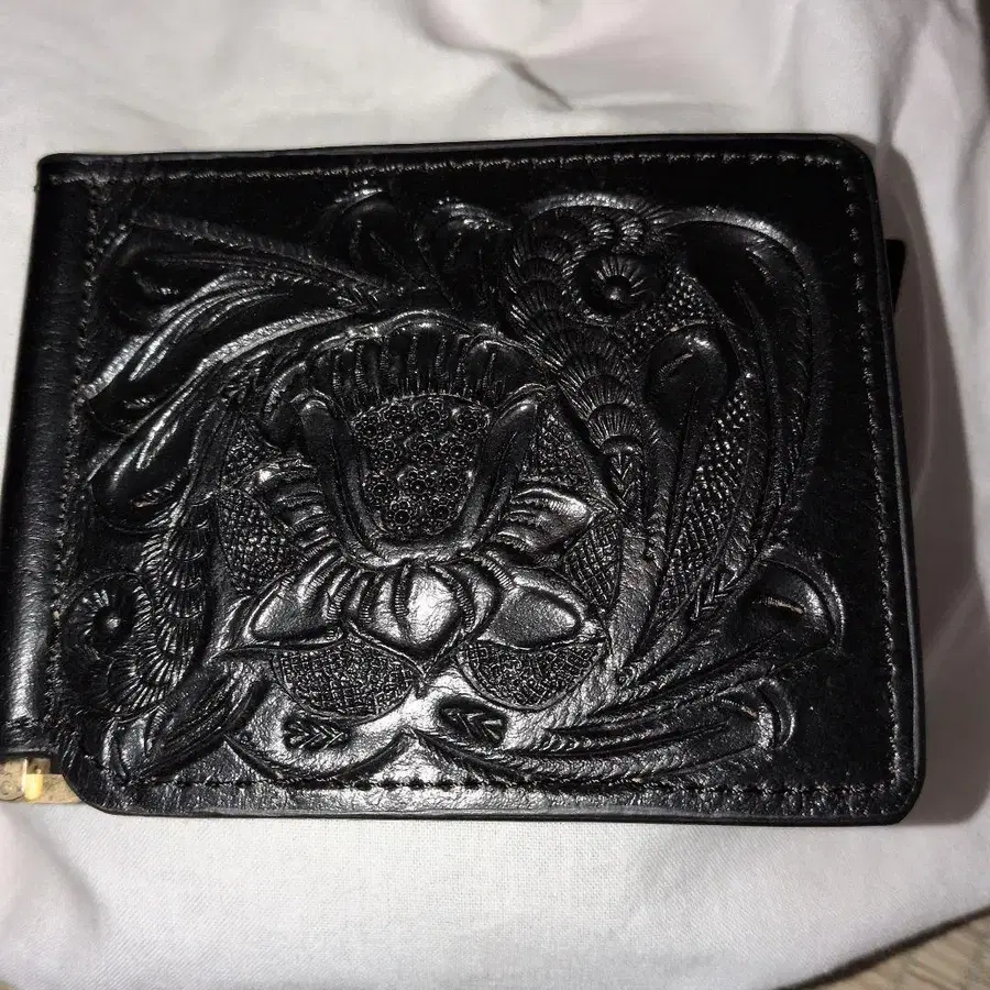 꽃 조각이 새겨진 블랙 색상의 접이식 지갑. - 색상: 블랙 - 디자인: 꽃 조각 - 지퍼: 외부 지퍼 있음 - 내부 구조: 카드 슬롯 있음 방문해 주셔서 감사합니다. 미사용 새상품입니다.