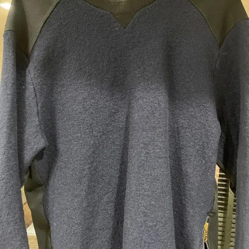 네이비 트레이닝복, 지퍼와 가죽 라벨이 특징입니다. - 색상: 네이비 - 소재: 울 혼방 - 디자인: 지퍼 포함 - 특징: 가죽 라벨 포함 방문해 주셔서 감사합니다. 사이즈 - L