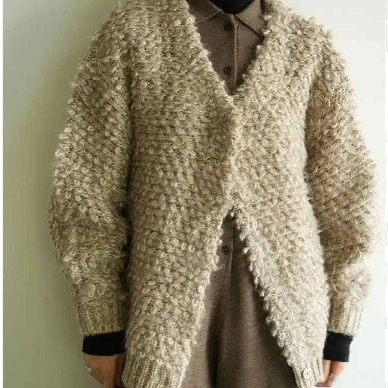 클라네 CLANE 모헤어 루프 벌키 니트 가디건 1 브라운