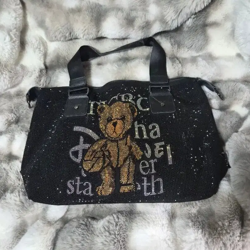 전면에 빽빽하게 깔린 큐빅이 빛나는 토트 숄더백입니다.