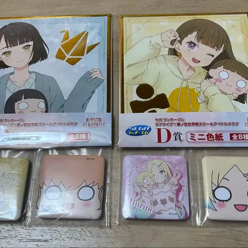 세가 럭키 쿠지 하스노소라 여학원 스쿨 아이돌 클럽 D상 미니 색지: 효세 긴코, 마치 스즈 E상 스퀘어 캔뱃지: 히노시타 카호, 오자와 루리노 상기 4점 세트입니다. 낱개 판매 불가, 가격 인하 불가, 즉시 구매 OK입니다.