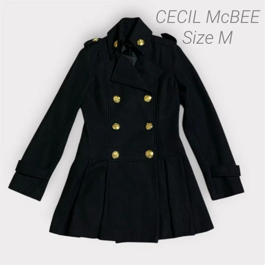 더블 버튼과 골드 버튼이 특징이며, 밑단은 플레어 디자인으로 되어 있습니다.