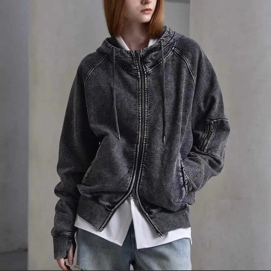 • 그레이 풀 집업 후드 부착 후드티