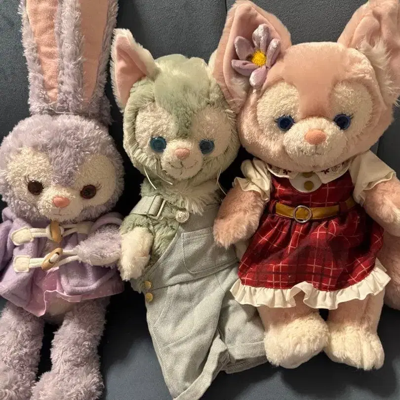 - 특징: 봉제 인형 3체 세트 - 택: 디즈니 - 데미지: 화이트 의류에 작은 얼룩, 머리띠 뒷면 변색 스텔라 루 젤라토니 리나벨 디즈니씨 디즈니랜드
