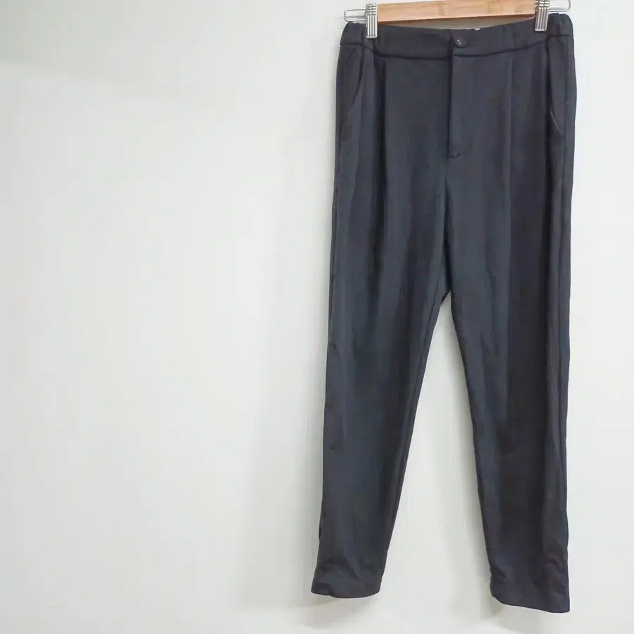 블랙 캐주얼 팬츠, 사이드 포켓이 있어 스타일리시한 디자인.