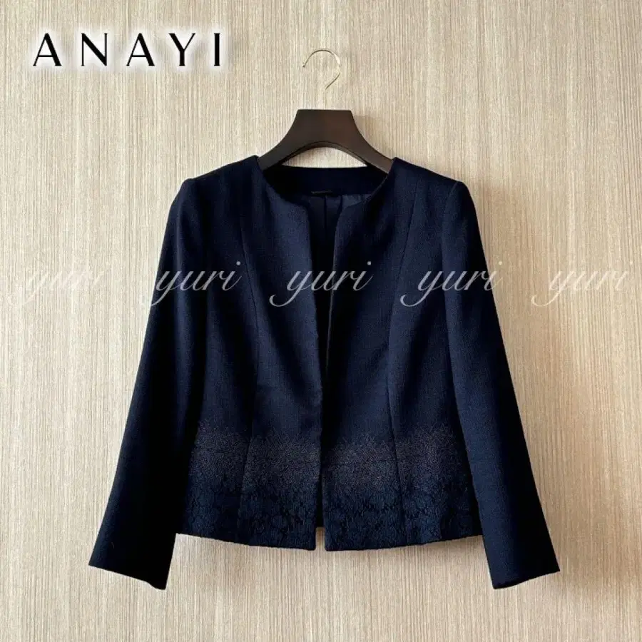 재킷은 크루넥의 컴팩트한 실루엣으로, 밑단에 레이스를 장식한 디자인이며, 원피스와 코디하기 좋은 숏 기장입니다.