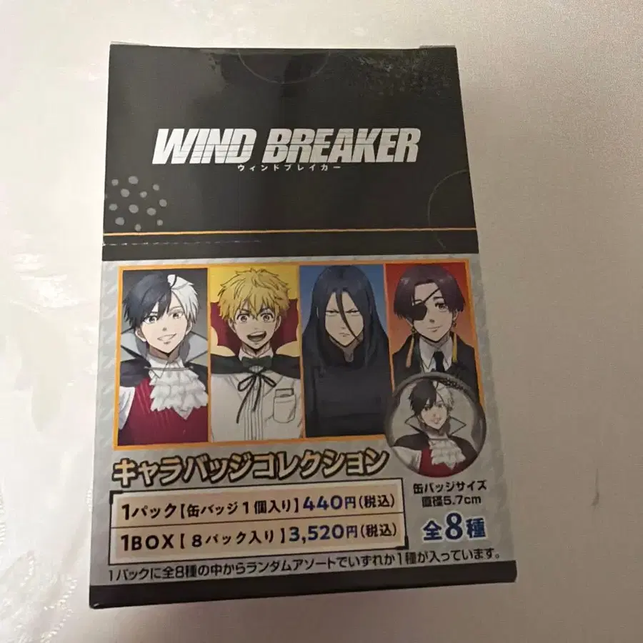 윈드브레이커 캐릭터 배지 컬렉션 박스 판매 캔뱃지 이미지의 굿즈 세트입니다. ⚠︎ 미개봉 상태이나 초기 데미지 및 배송 시에는 상자를 해체하여 보내드리니 양해 부탁드립니다. 유 패킷 포스트로 발송 예정. 검토 부탁드립니다!