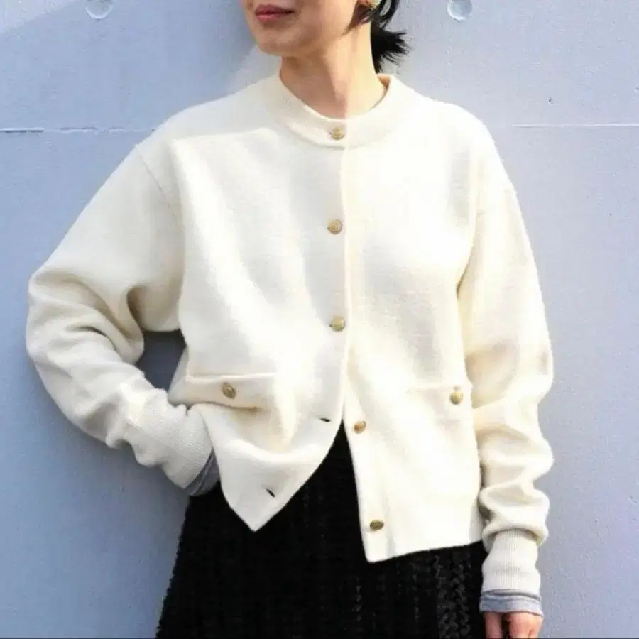 ⚪︎ 묶음 할인이 가능합니다. 섬세한 소재이므로 보풀이 있습니다. 보풀 제거기로 제거하면 깨끗해집니다. IENA 이에나 더블 페이스 니트 가디건 22AW 표면에는 실이 가는 메리노울을 사용하여 부드럽고 촉감이 좋으며, 뒷면에는 코튼을 사용하여 산뜻한 촉감으로 착용감이 좋은 더블 페이스 니트 가디건입니다. 볼륨감이 있고 쫀득한 질감이 특징입니다. 메탈 골드 버튼을 사용하여 자켓처럼 마무리했습니다. 기장이 약간 짧아 볼륨감 있는 하의와도 밸런스를 잡기 쉬우며, 가벼운 아우터로도 활약하는 아이템입니다. ********************** 비침: 없음 안감: 없음 신축성: 있음 광택감: 없음 원단 두께: 보통 ********************** 공식 사이즈: FREE (기장 52 어깨 너비 48 가슴 너비 53 팔 길이 58) 색상: 화이트 시로 소재: 울 62%, 면 29%, 폴리에스테르 9%