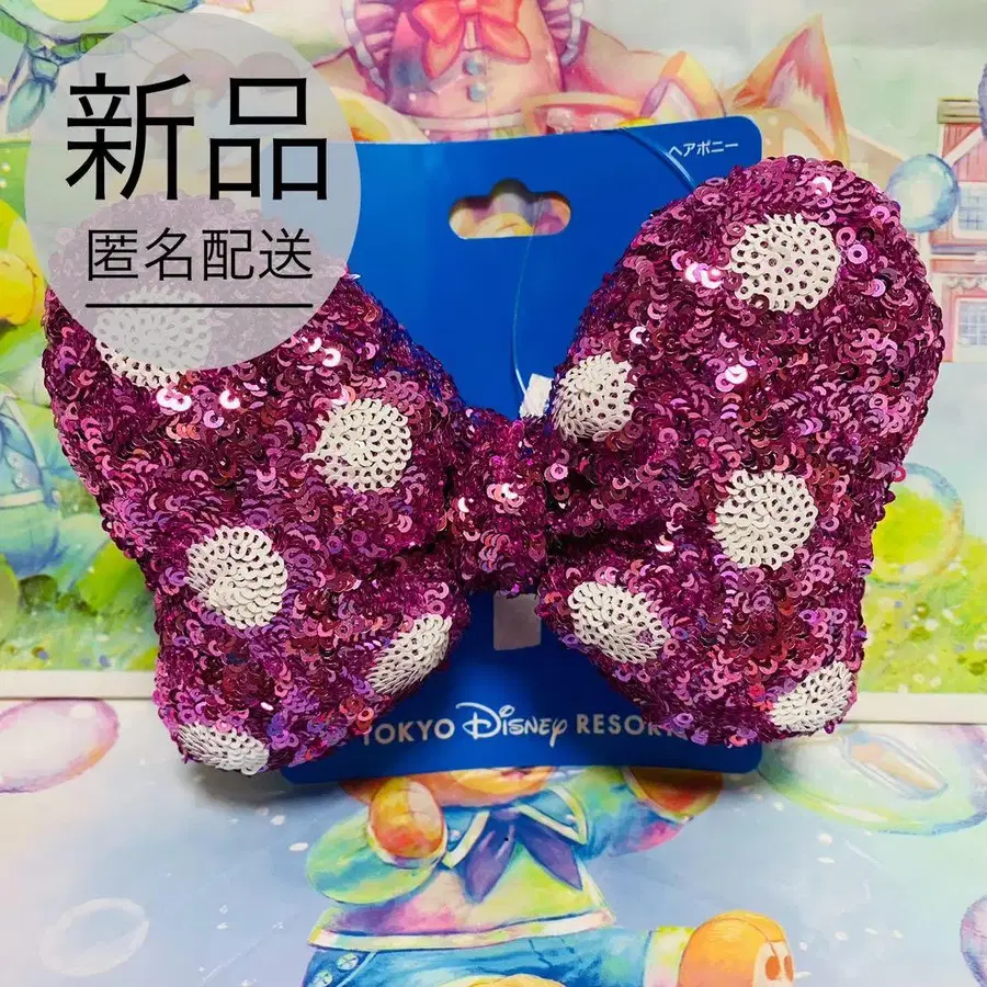 새상품 핑크 리본 머리끈 도쿄 디즈니 리조트 스팽글 미니