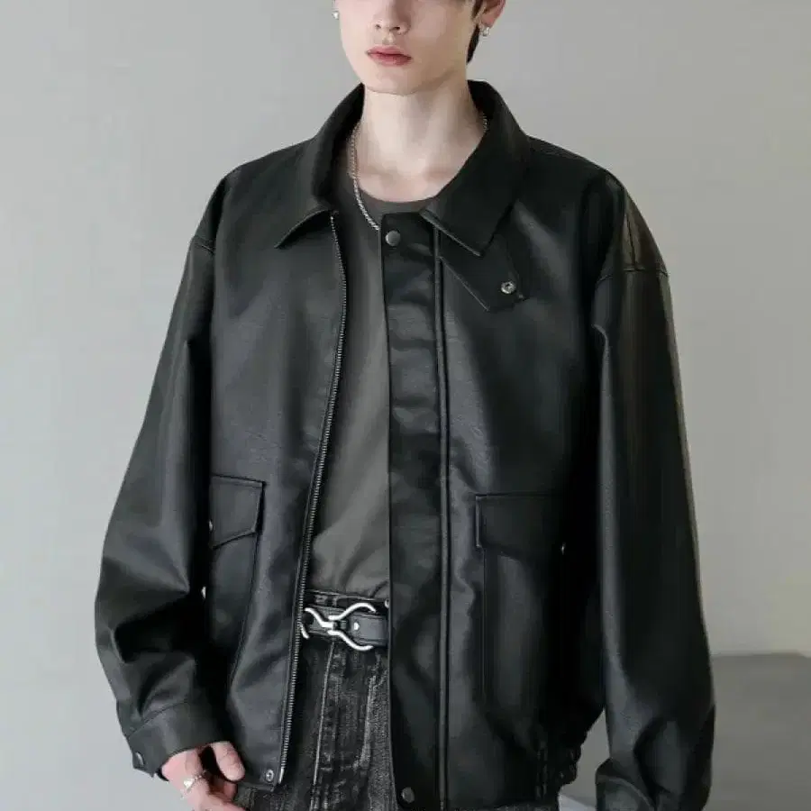 Bleme 오버 사이즈 빈티지 페이크 가죽 자켓
