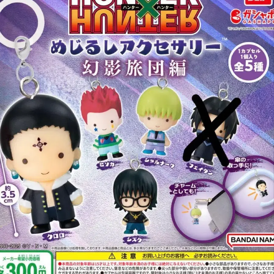 HUNTER x HUNTER 캐릭터 디자인 약 3.5cm 캡슐 토이, 총 5종 중 4종을 포함한 세트입니다.