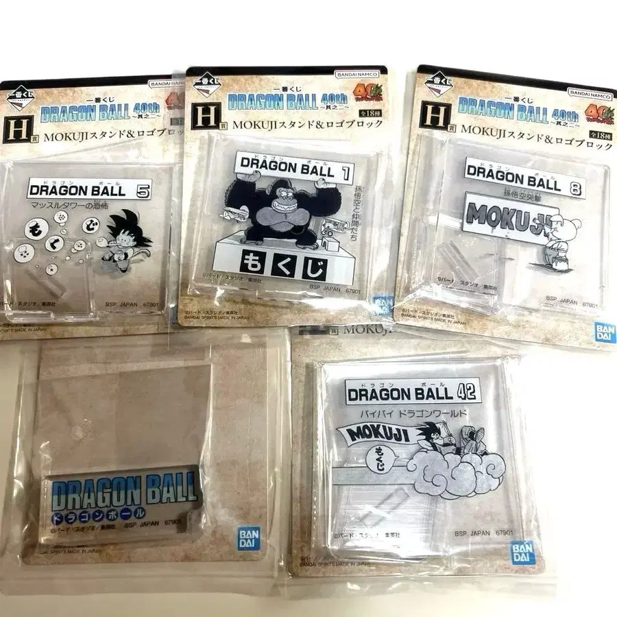 제일복권 DRAGON BALL 40th ~그 두 번째~ H상 MOKUJI 스탠드 & 로고 블록 5종 즉시 구매 가능. 낱개 판매 불가. 발송 시 에어캡으로 포장하여 네코포스용 종이상자로 발송해 드립니다. 잘 부탁드립니다.