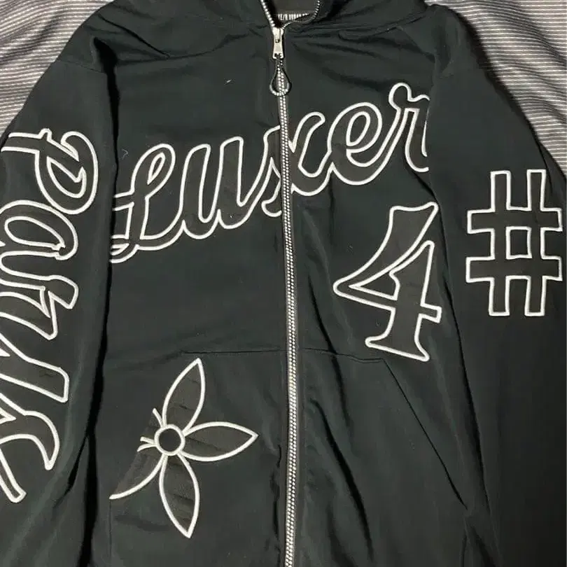 XL 사이즈이지만 170cm 정도가 딱 맞습니다. 자수 장식 지퍼 후드티 작년에 구매했습니다. 많이 입지 않아서 판매합니다. 깨끗합니다. 지퍼 부분에 라메가 들어 있습니다. 색상 - 블랙 계열 패턴 디자인 - 자수 얼룩, 찢김, 냄새 등 - 없음