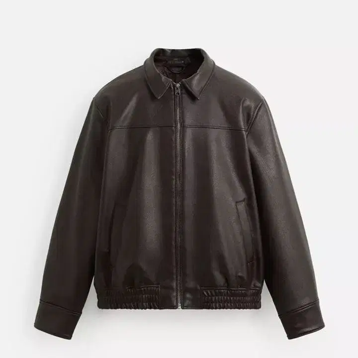 ZARA 다크 브라운 남성용 가죽 봄버 자켓