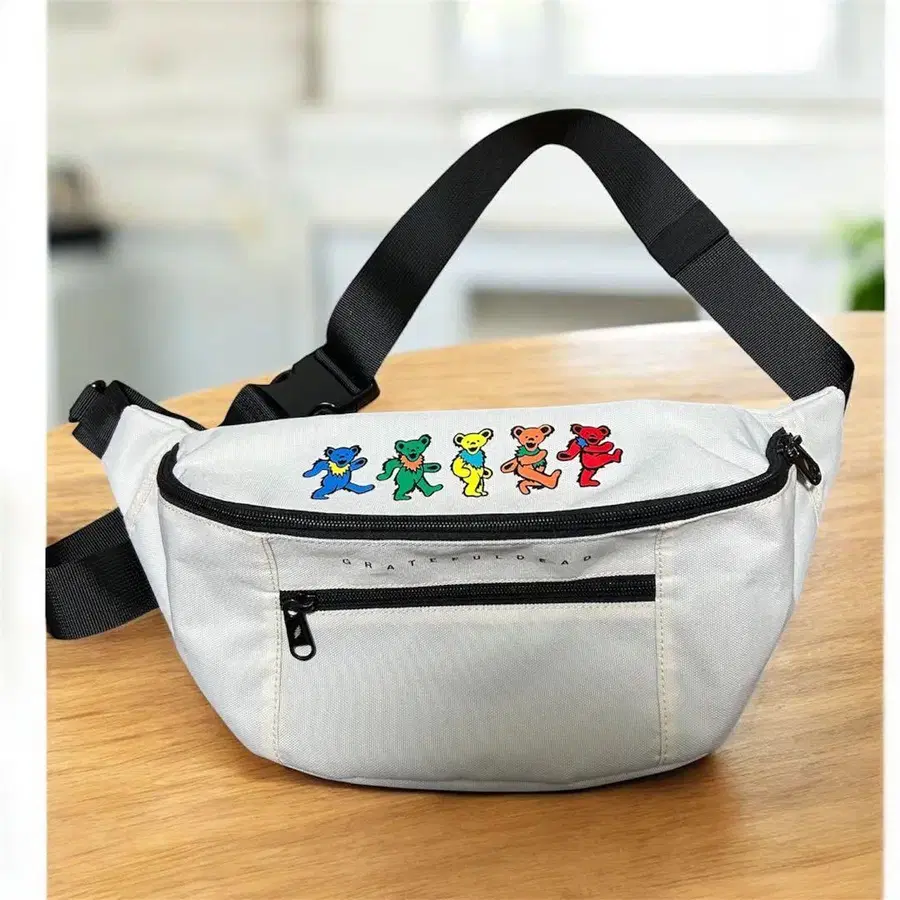 프론트 상단에 댄싱 베어 프린트가 들어간, 사용하기 쉬운 심플한 디자인의 힙색입니다.