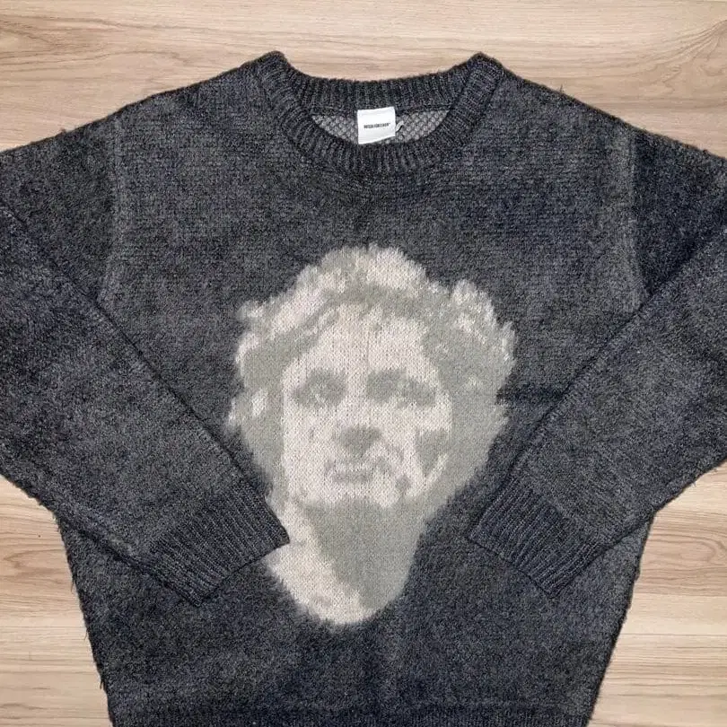 얼굴 프린트가 특징인 그레이 니트 스웨터. - 브랜드: WISH FOREVER - 사이즈: M - 디자인: 얼굴 프린트 - 색상: 그레이 - 소재: 니트 방문해 주셔서 감사합니다.