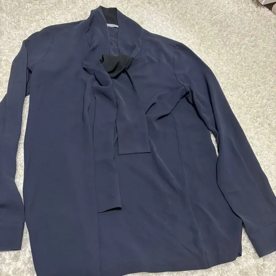 theory luxe 네이비 리본 포함 긴팔 셔츠