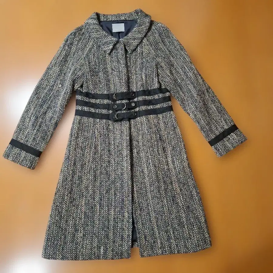 헤링본 무늬 롱 코트, 허리 벨트 포함으로 스타일리시합니다.