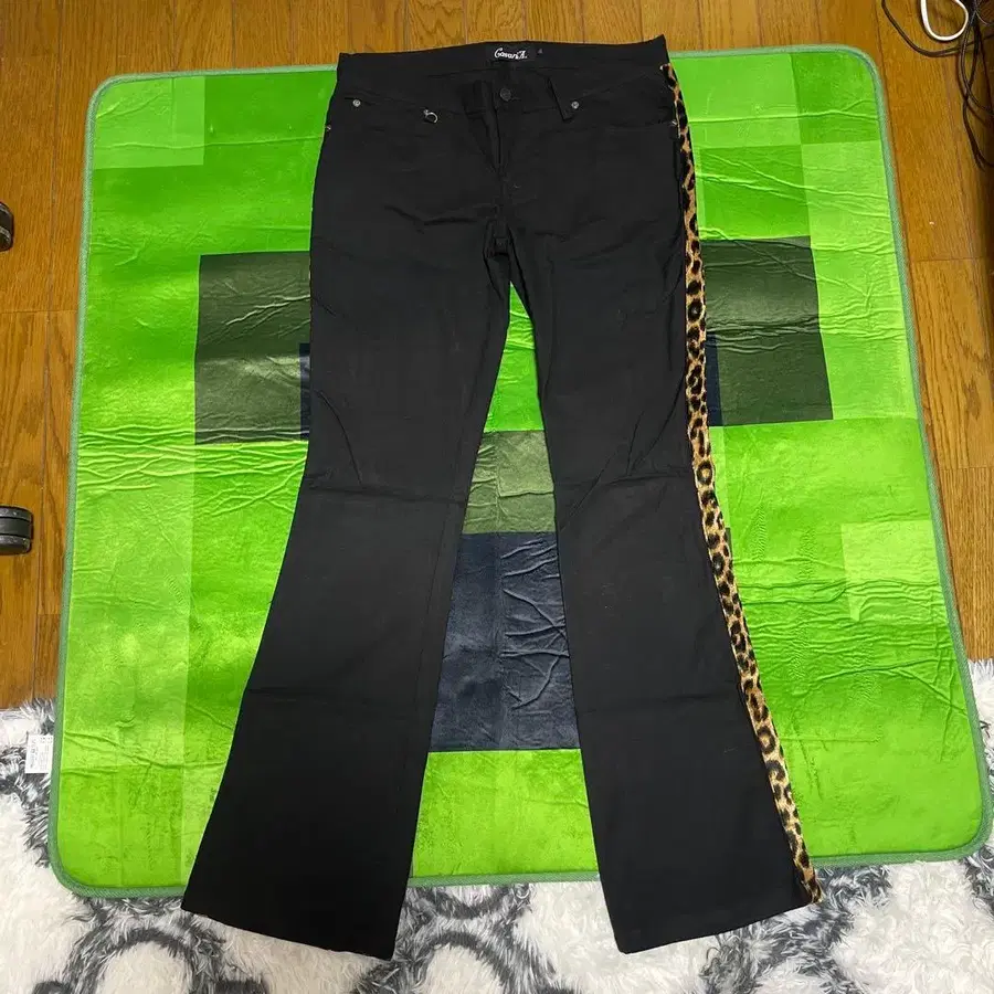레오파드 무늬 사이드 라인의 블랙 부츠컷 데님. - 브랜드: CavariA - 컬러: 블랙 - 디자인: 레오파드 무늬 사이드 라인 - 스타일: 부츠컷 방문해 주셔서 감사합니다. 사이즈 - L