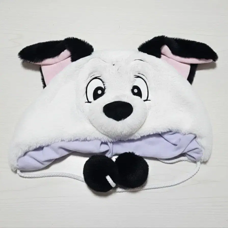캐릭터 101마리 강아지풍 퍼 모자 화이트 블랙 물방울 패턴