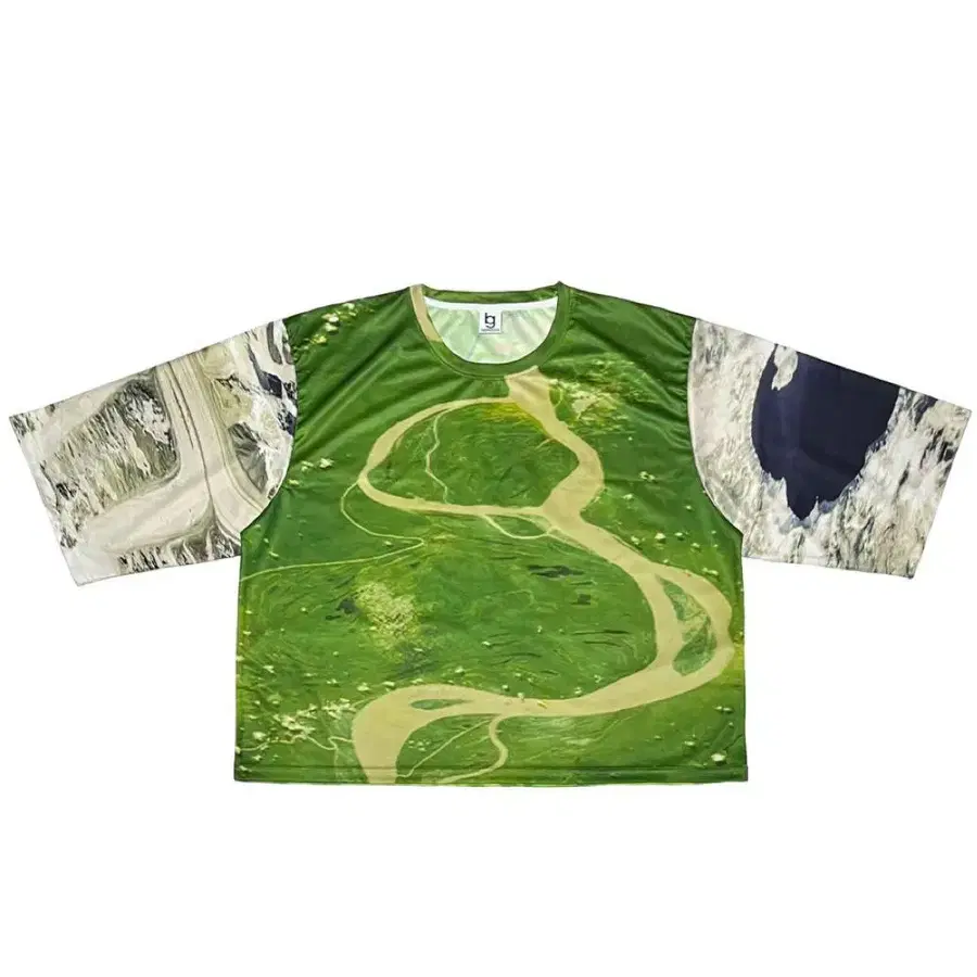 지형을 본뜬 유니크한 디자인의 긴팔 T셔츠와 숏팬츠 세트.