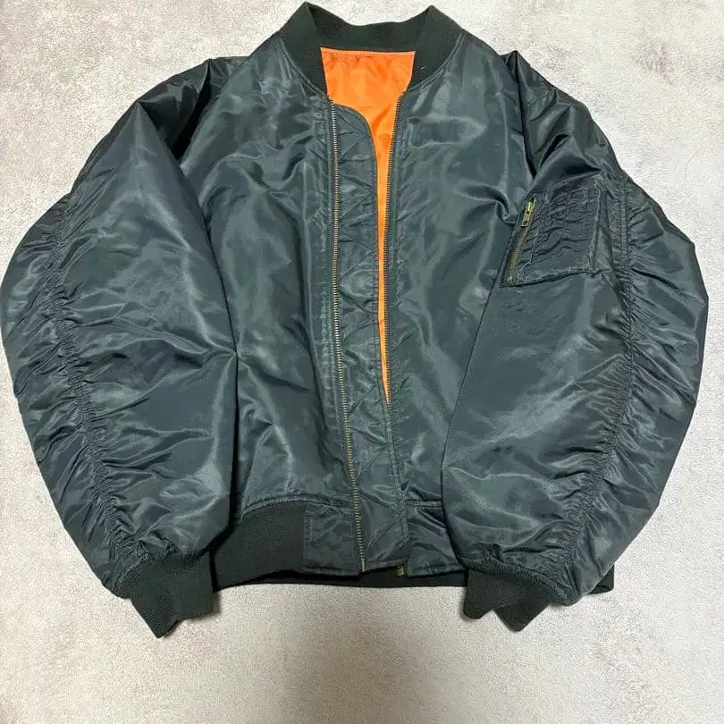 블랙과 오렌지 색상의 MA-1입니다. 실루엣도 좋고 돌려입기 좋습니다.