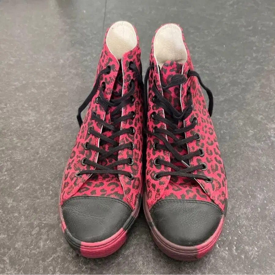 레오파드 무늬의 빨간색과 블랙 하이컷 스니커즈, 개성 있는 디자인으로 시선을 사로잡는 한 켤레. 아방 컨버스 - 브랜드: CONVERSE - 색상: 레오파드 무늬 (빨간색/블랙) - 스타일: 하이컷 - 모델명: ALL STAR 방문해 주셔서 감사합니다. 사이즈 - 27.5cm