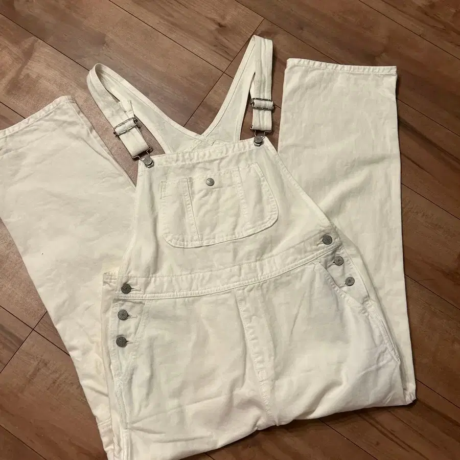 [ 새상품급 ] SOMETHING 화이트 화이트 오버롤 살로펫 M